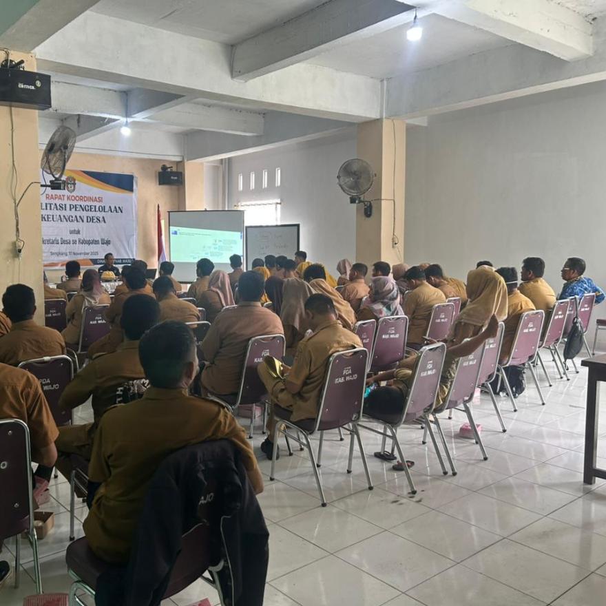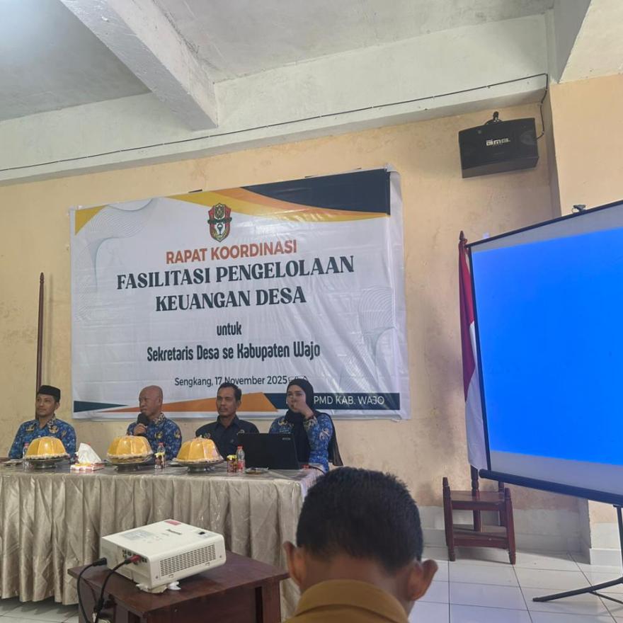 Sengkang, 17 November 2025 - Dalam upaya meningkatkan kapasitas aparatur desa dalam pengelolaan keuangan yang akuntabel dan transparan, Pemerintah Kabupaten Wajo menyelenggarakan Kegiatan Fasilitasi Pengelola Keuangan Desa pada Senin, 17 November 2025. Kegiatan ini berlangsung di Gedung Dakwah Muhammadiyah Sengkang dan diikuti oleh para Kepala Desa, Sekretaris Desa, Kaur Keuangan, dan operator Siskeudes dari seluruh desa di Kabupaten Wajo.