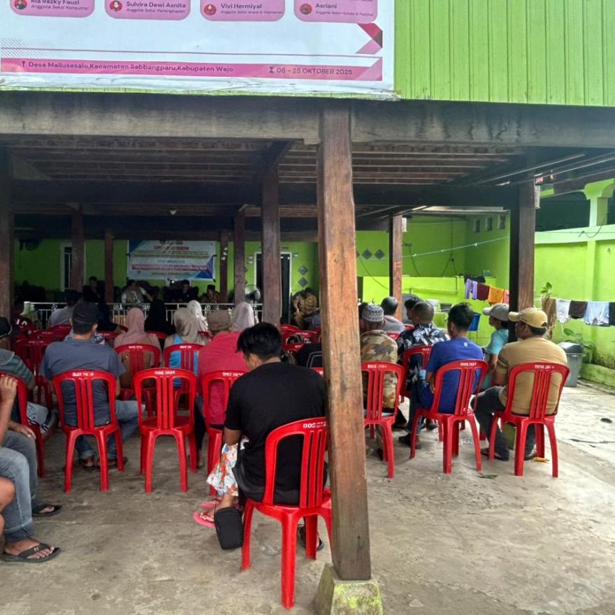 Cellamata, 18 November 2025 - Pemerintah Desa Mallusesalo melaksanakan kegiatan Sosialisasi Hukum dengan tema “Meningkatkan Kesadaran Hukum Masyarakat dalam Mencegah Sengketa Tanah dan Pencemaran Nama Baik” pada Selasa, 18 November 2025. Acara ini diselenggarakan di Rumah Kediaman Kepala Desa Mallusesalo dan diikuti oleh perangkat desa, tokoh masyarakat, pemuda, serta warga setempat.