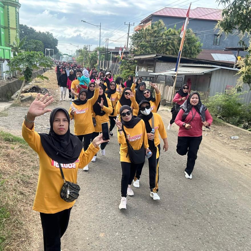 Pelaksanaan Gerak Jalan Santai diawali dengan apel pembukaan dan doa bersama, kemudian dilanjutkan dengan rute gerak jalan dari Lapangan Trikora Salojampu menuju Tugu Fix Baru, melewati wilayah Adingge, dan kembali ke Lapangan Trikora Salojampu sebagai titik akhir. Sepanjang rute, peserta disambut meriah oleh warga yang mengenakan atribut merah putih, menambah semangat nasionalisme di suasana pagi yang cerah.