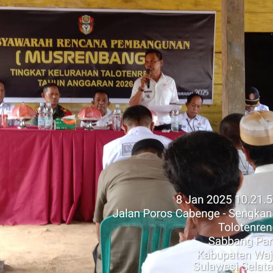 Talotenreng, 8 Januari 2025 – Pemerintah Kelurahan Talotenreng melaksanakan Musyawarah Perencanaan Pembangunan (Musrenbang) tingkat kelurahan pada Rabu (8/1/2025) sebagai bagian dari proses penyusunan Rencana Kerja Pemerintah Daerah (RKPD) tahun 2026 dan Daftar Usulan Rencana Kerja Pemerintah Daerah (DURKPD) tahun 2027.